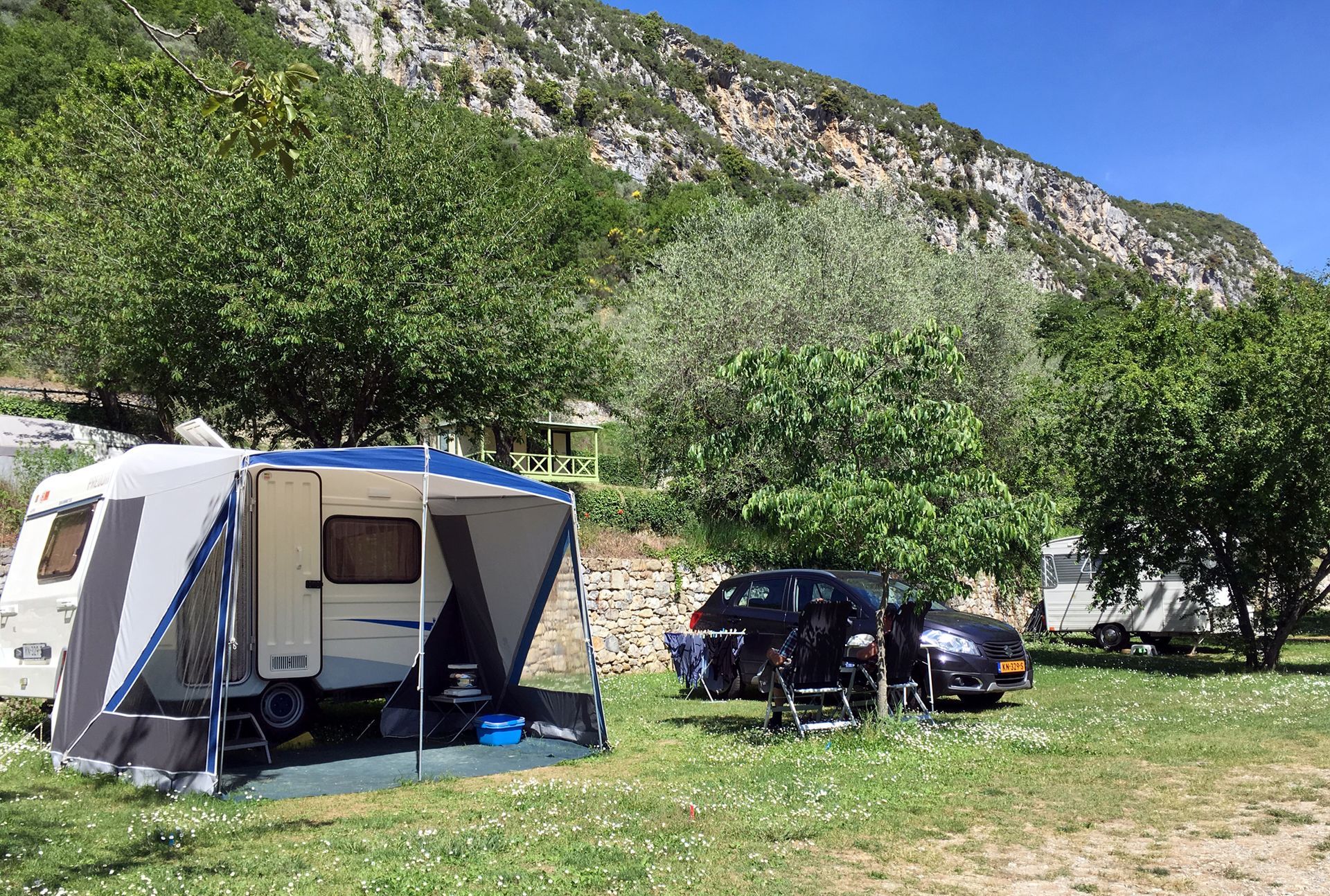 Rustige camping zonder animatie, gelegen tussen zee en bergen op 4 km afstand van Sospel, een pittoresk dorpje aan de rand van het nationale Mercantour park.