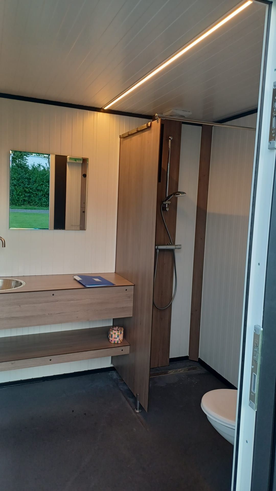 De ruime kampeerplaatsen zijn voorzien van modern privé sanitair, zodat je kunt genieten van alle vrijheid van kamperen met het comfort van thuis. Geen wachtrijen, geen gedeelde douches—gewoon je eigen luxe sanitair direct bij de plek.