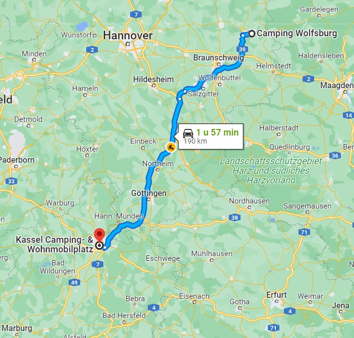 - Vandaar gaan we naar het Harz gebergte naar camping Bärenbache. Voor route druk hier.
